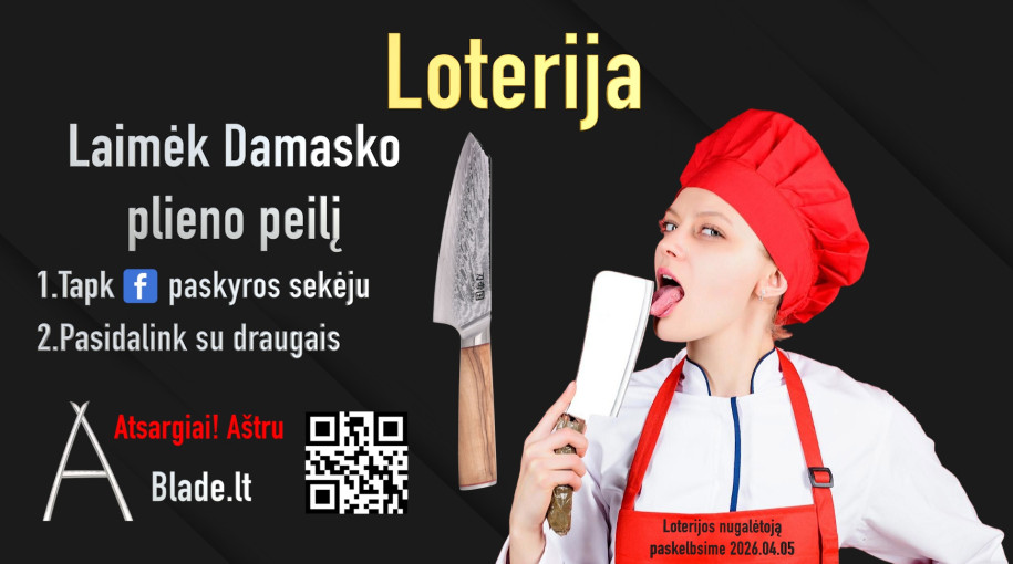 Tradiciniu būdu pagamintas japoniškas virėjo peilis. Geležtė sudaryta iš 33 sluoksnių nerūdijančio Damasko plieno. Pagrindinis sluoksnis pagamintas iš..